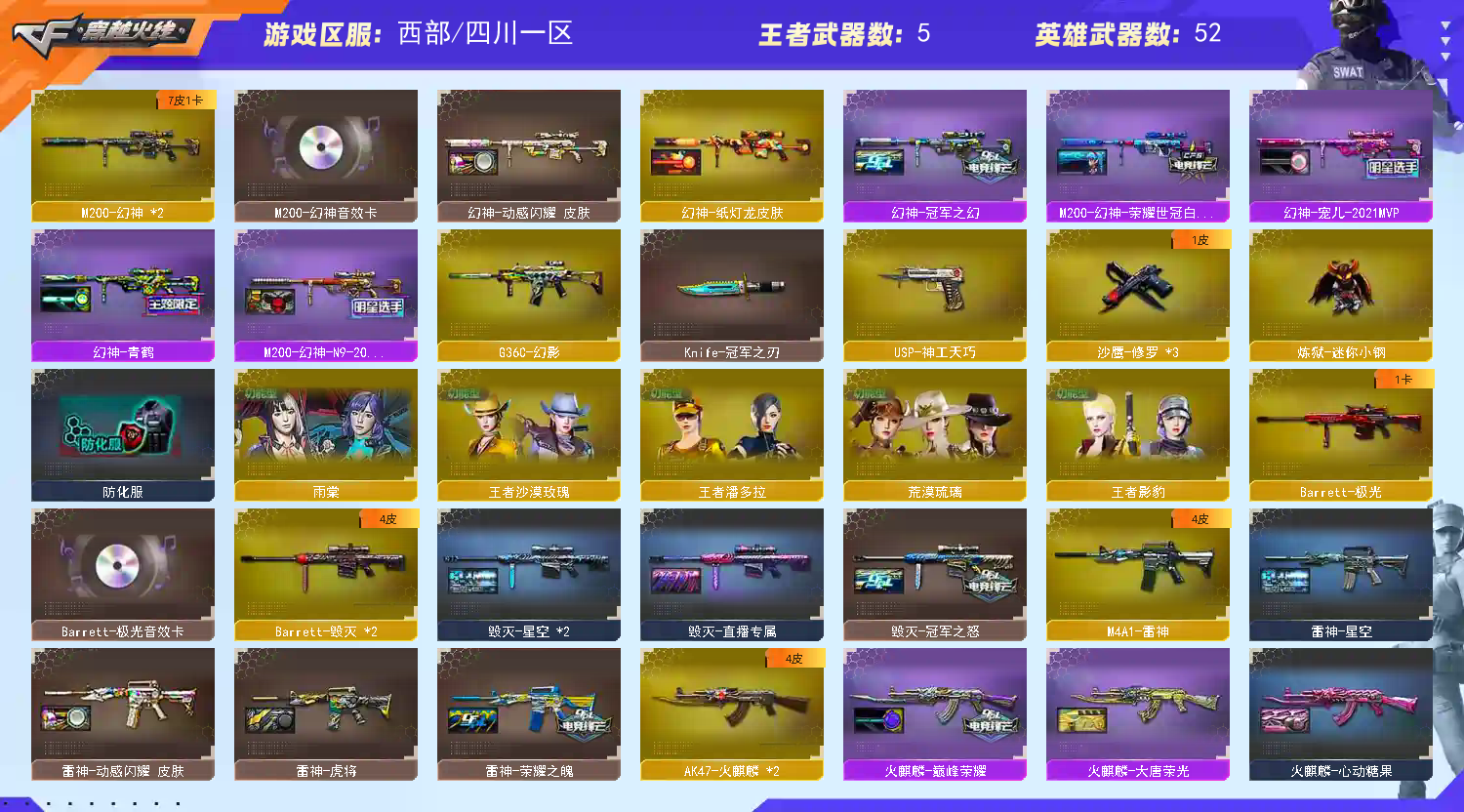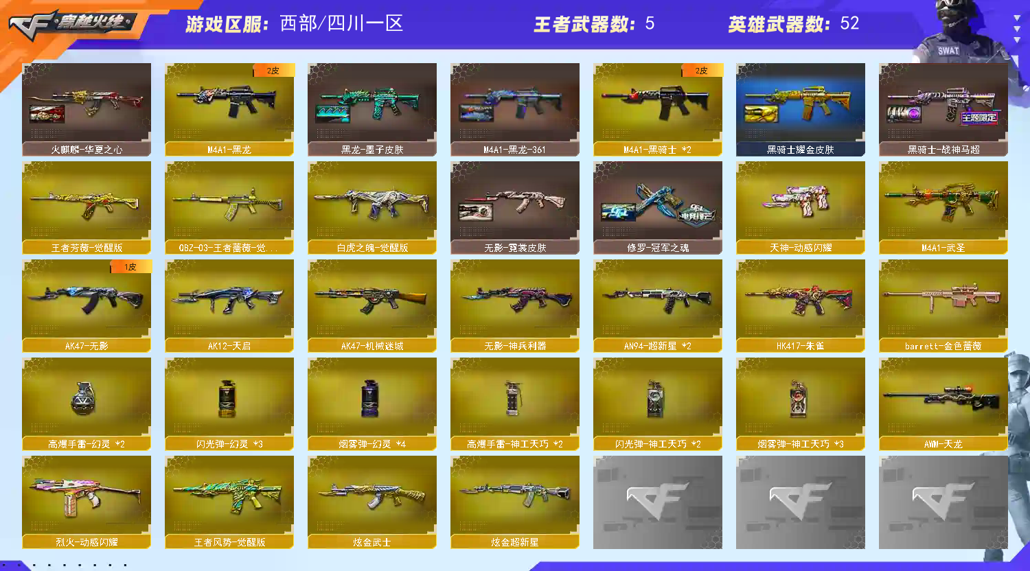 • 游戏区服:穿越火线 / 西部 / 四川一区