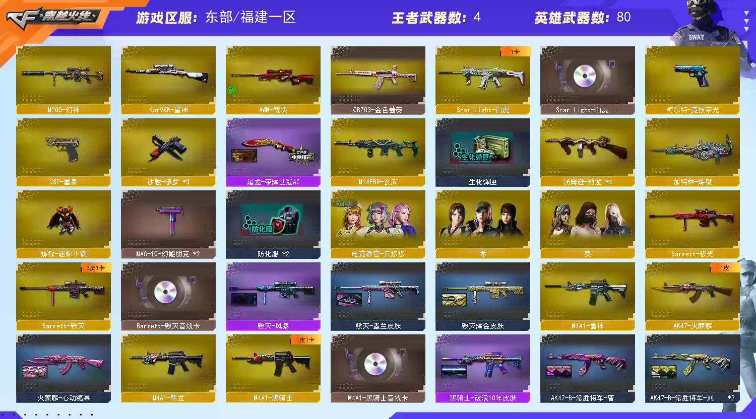 爆破号♥幻神♥竞技荣光♥usp雷暴♥4烈♥柯尔特竞技荣光♥王者之啸♥王者之击♥白虎♥qbz金色蔷薇