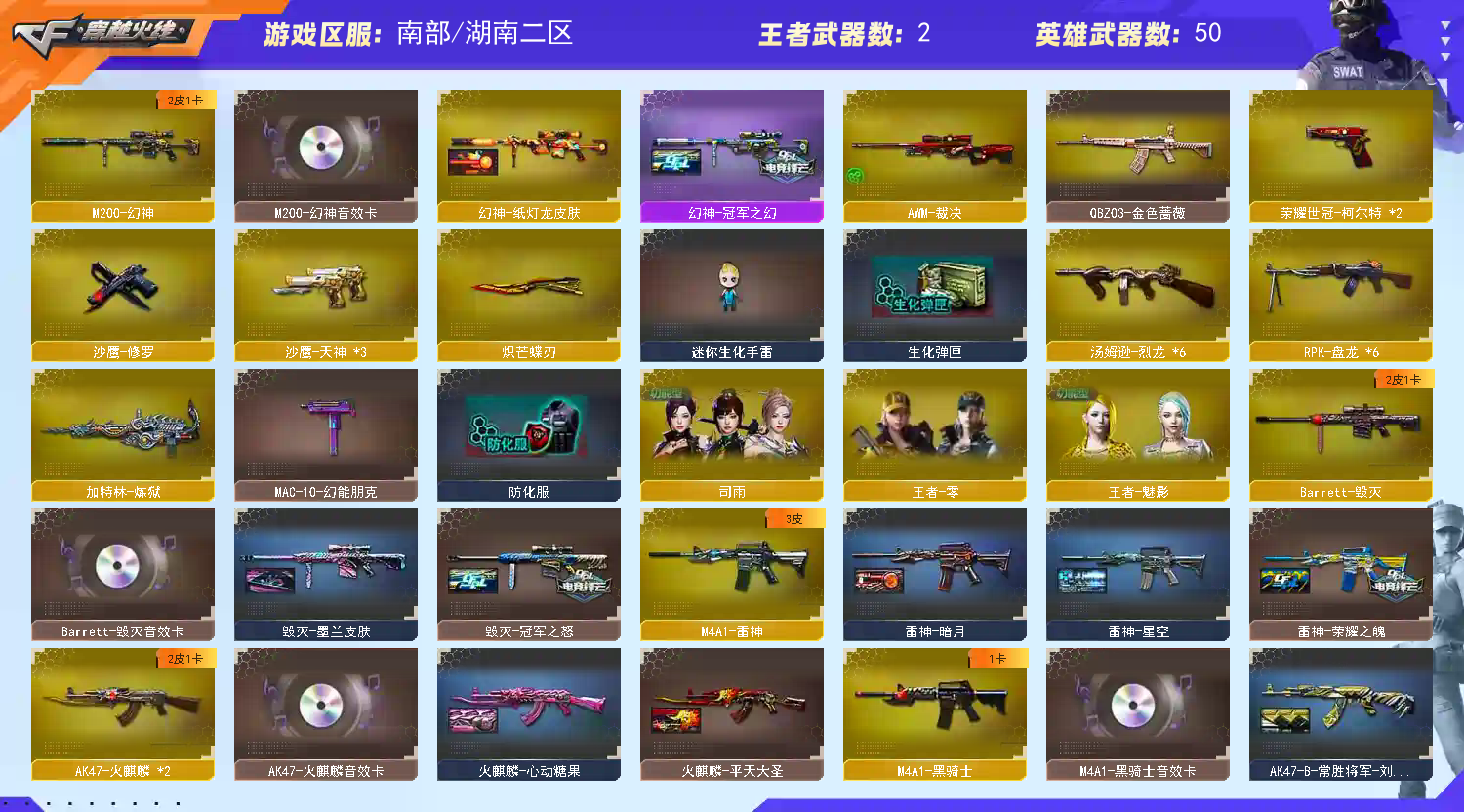 • 游戏区服:穿越火线 / 南部 / 湖南二区