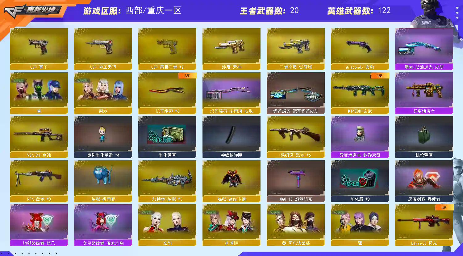 • 游戏区服:穿越火线 / 西部 / 重庆一区