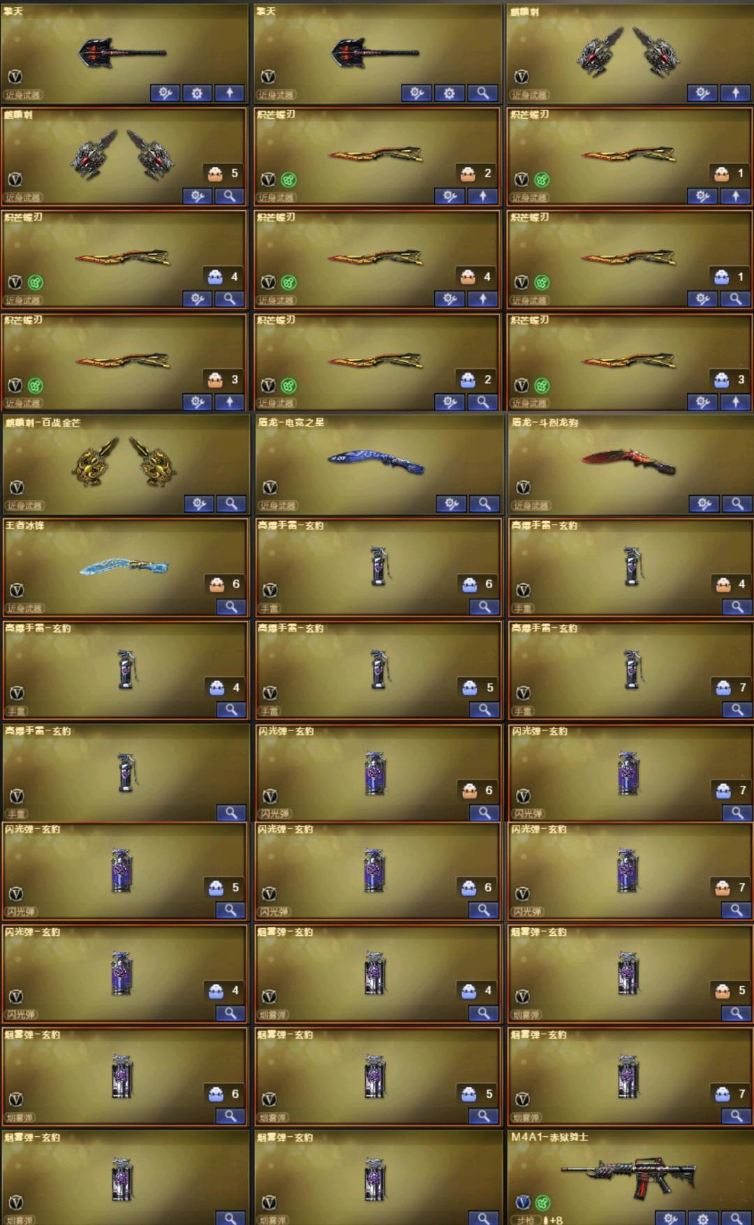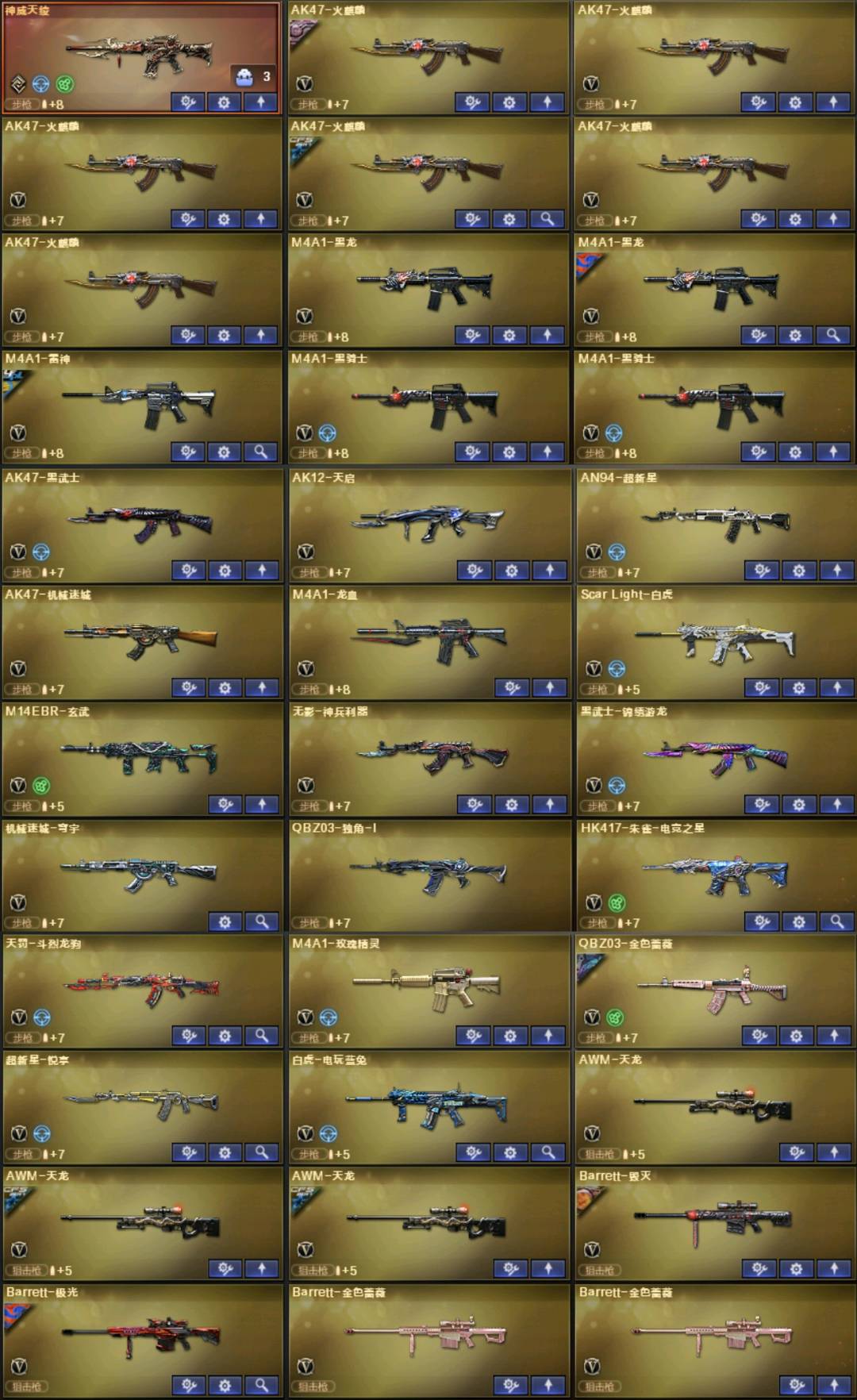 。。。。。;炽芒蝶刃,传说星骇,RPK-盘龙,QBZ03-金色蔷薇,Scar Light-白虎,