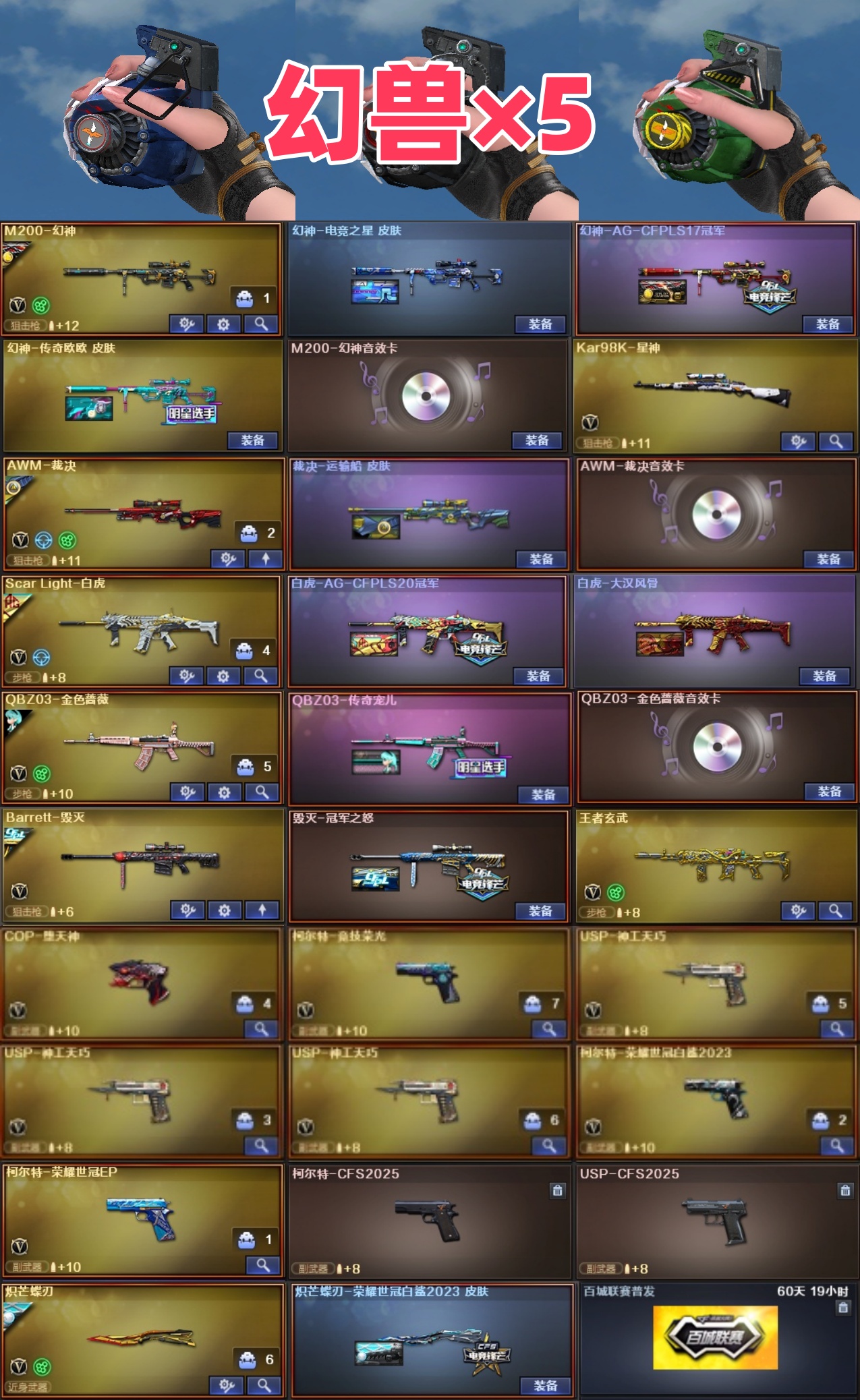 【北部】幻兽×5+幻神欧欧3皮音⭐裁决套+星神usp×3cop白鲨特EP特qbz宠儿白虎AG