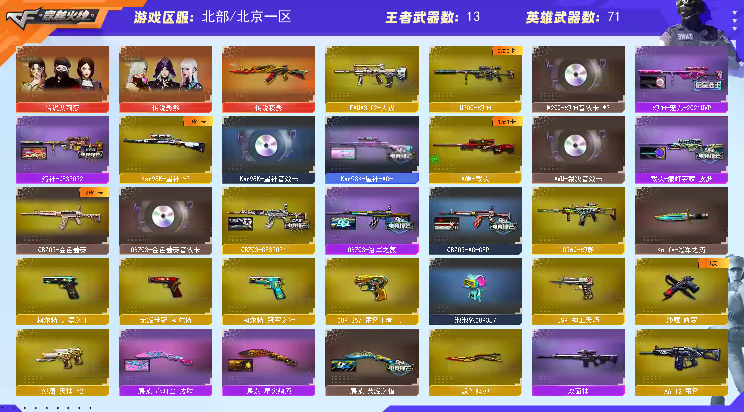 • 游戏区服:穿越火线 / 北部 / 北京一区