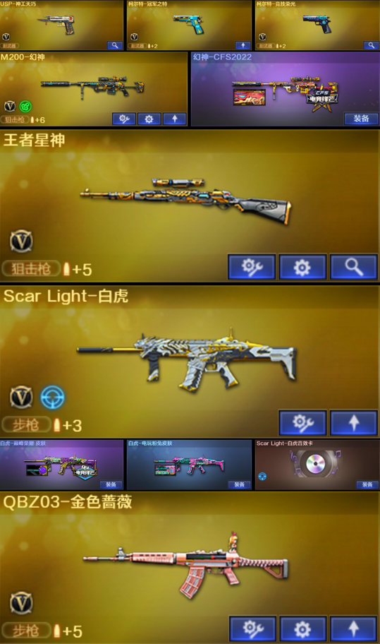 幻神CFS2022❤️王者星神❤️白虎巅峰荣耀+音效卡❤️QBZ蔷薇❤️柯尔特冠军之特❤️USP神工