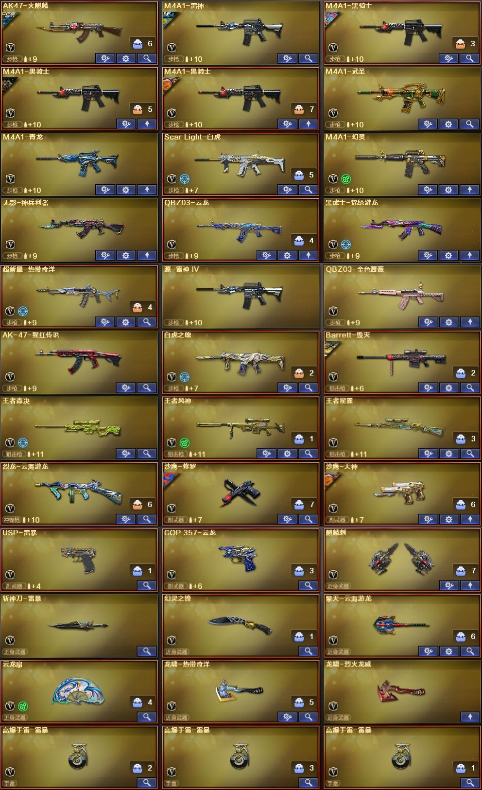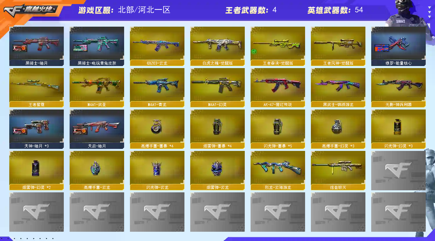 ★收藏好评! 由于异地登录保护机制,部分客户在使用客户端自动上号时会出现密码错误,注意本号密码不会错误,请多尝试5-6次!本账号已经过虚拟财产认定,请各位科技大神高抬贵手。请素质租号,文明游戏,谢谢大家配合!!;USP-雷暴,QBZ03-金色蔷薇,Scar Light-白虎,