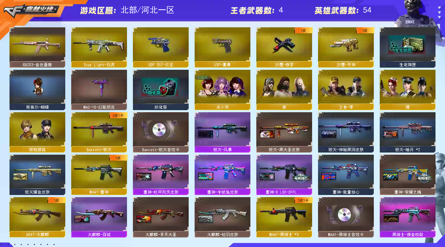 【北部】王者风神❤星庭❤USP雷暴COP❤白虎QBZ❤雷神荣耀❤雷暴套❤幻灵套