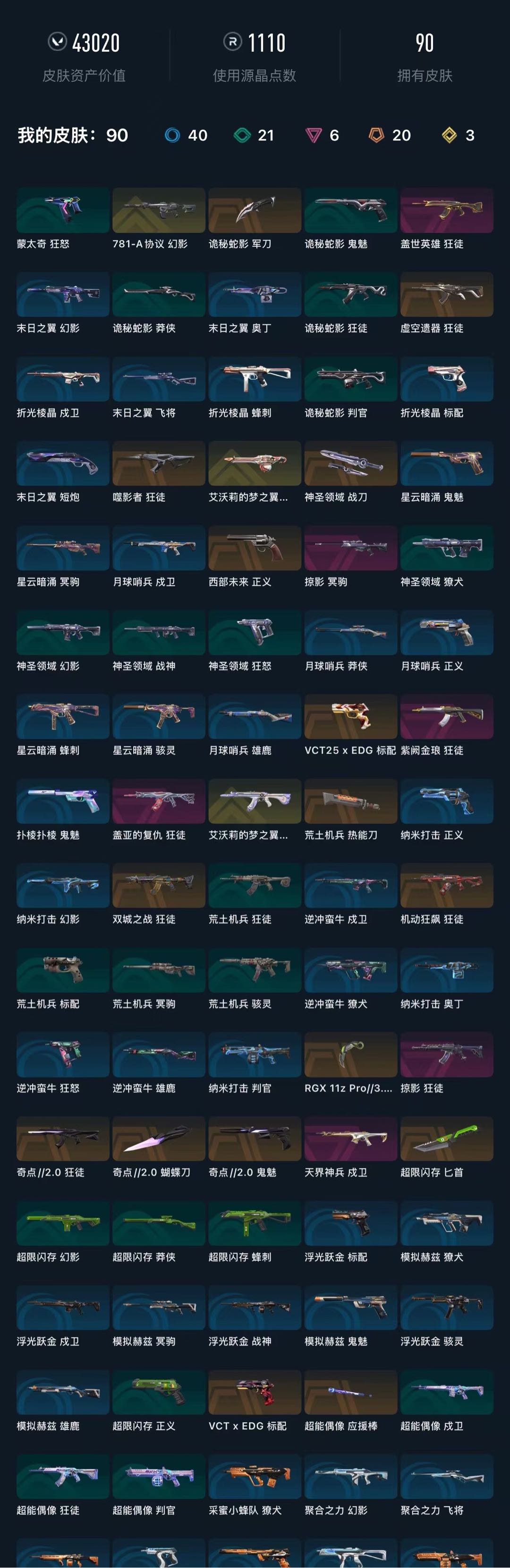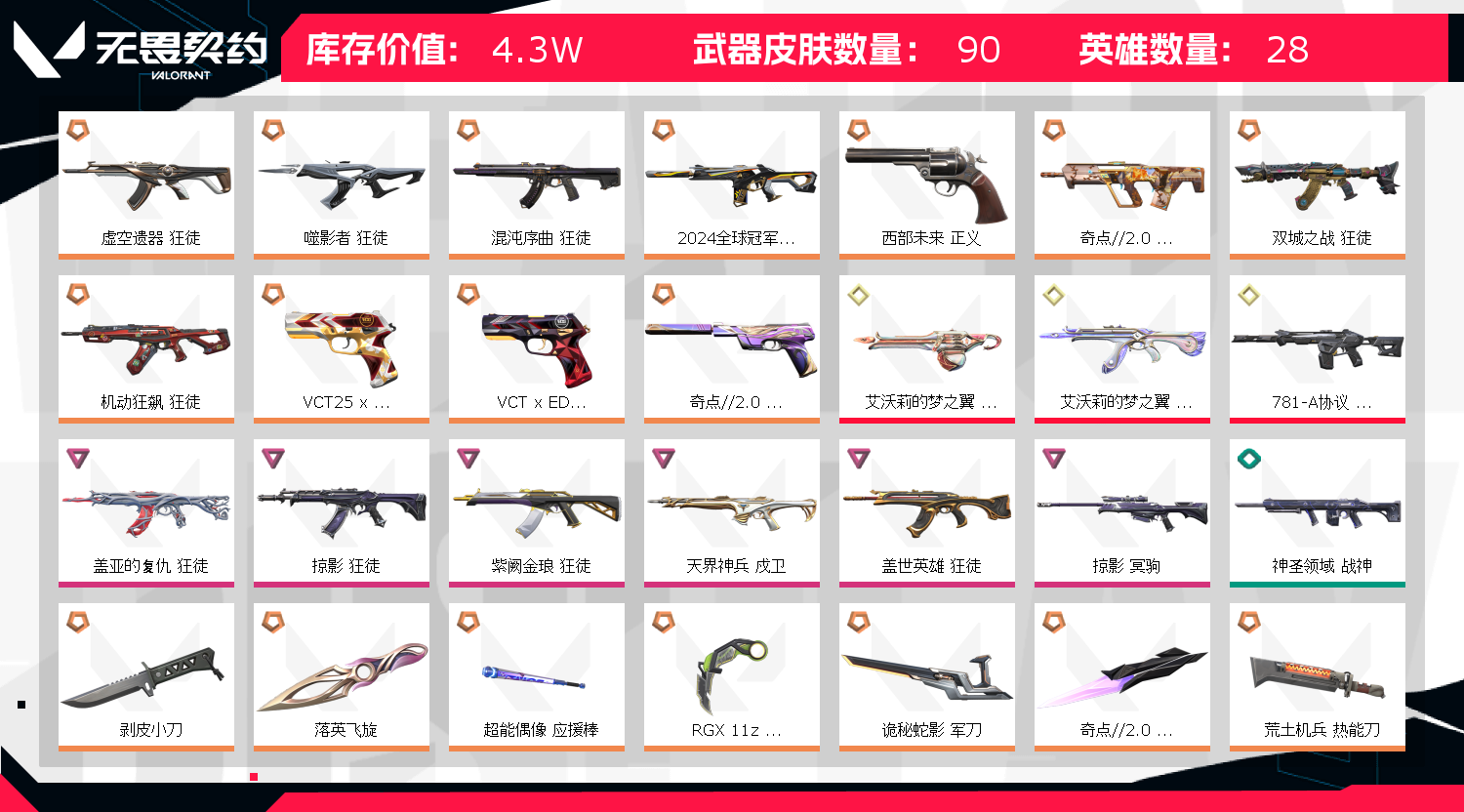 • 皮肤资产价值: 43020