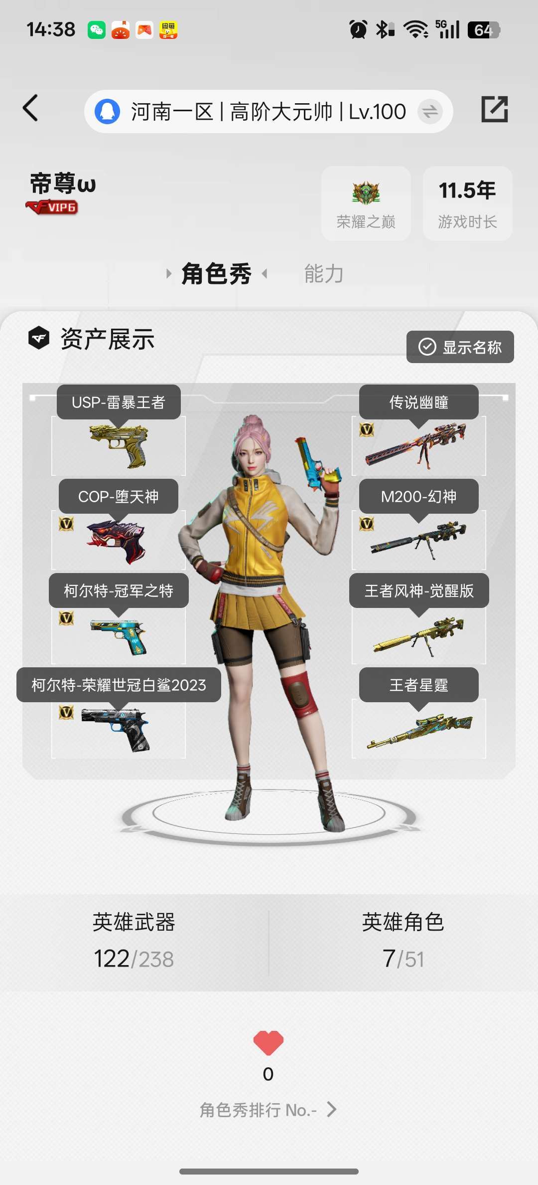 • 游戏区服:穿越火线 / 北部 / 河南一区