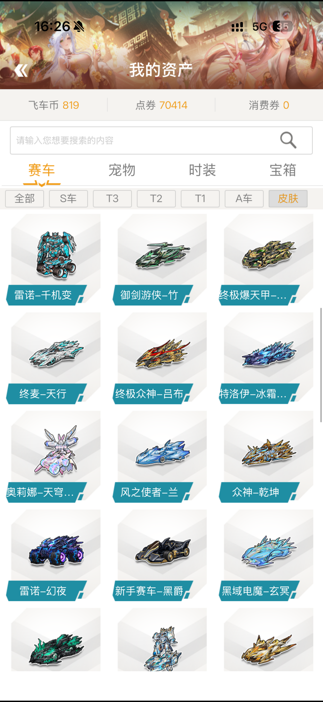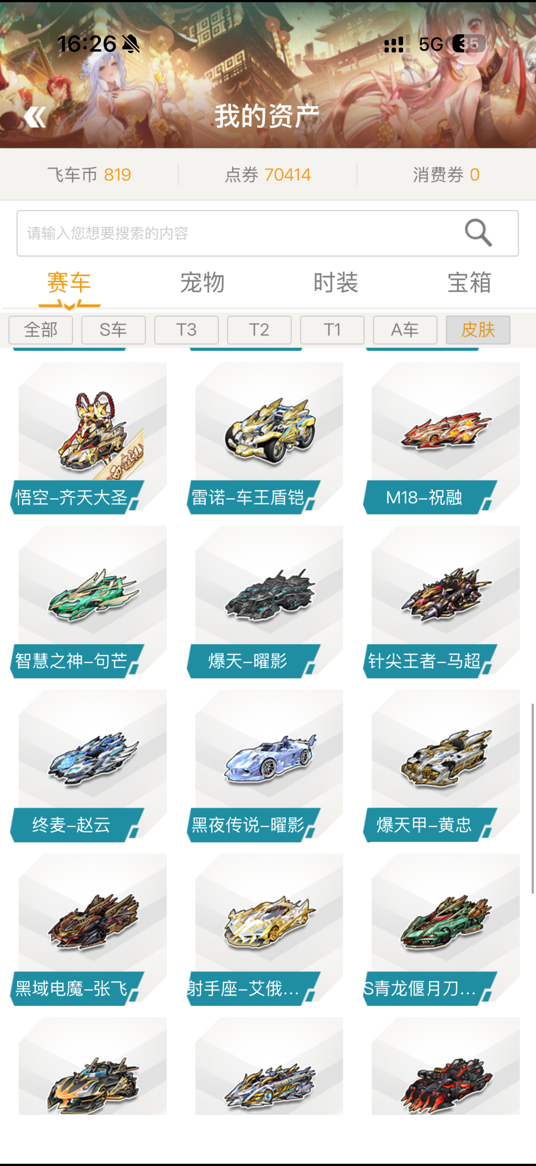 首页 > 租号大厅 > 飞车端游 > 电信区/电信区 > 63S/2M3/11T2/30T1/318A/45车皮/曜影10阶/琳琅天上时期S众多带重制皮