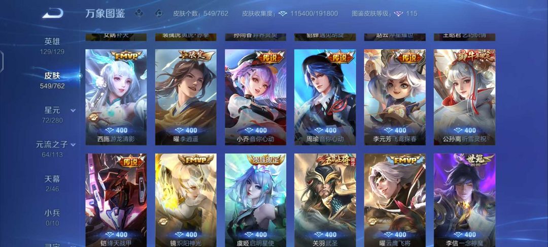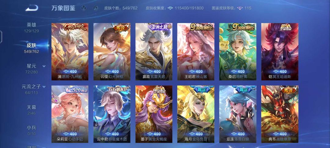 【非云直上】537满皮满典藏12星元◎鲁班新皮◎虞姬星元◎天使星元◎白金战神◎妲己绝版星元