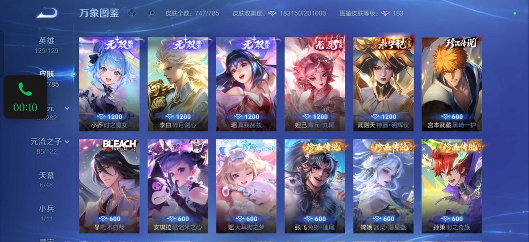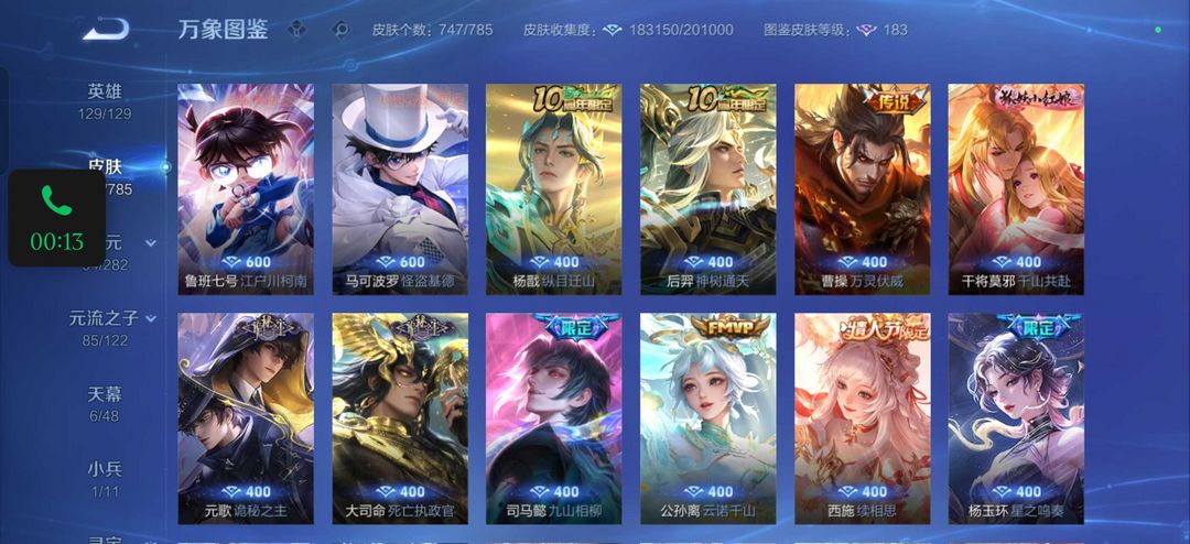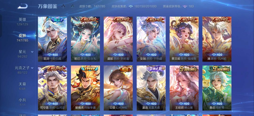 V10、550皮14水、吕布典藏-千魇归渊、云缨-神骥·越千峰、怪盗基德、伽罗星传说红枫、瑶典藏拾光映像、冥王哈迪斯、、龙年限定、齐天大圣