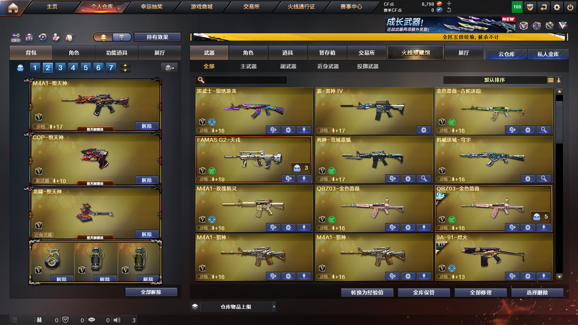 冠军之薇;USP-雷暴,传说星骇,RPK-盘龙,QBZ03-金色蔷薇,G36C-幻影,M200-幻神,Scar Light-白虎,