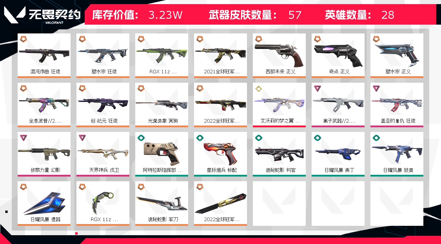 极品账号 喜欢来;盖亚的复仇 狂徒,侦察力量 幻影,RGX 11z Pro 狂徒,天界神兵 戍卫,混沌序曲 狂徒,塑水宗 狂徒,2021全球冠军赛 狂徒,