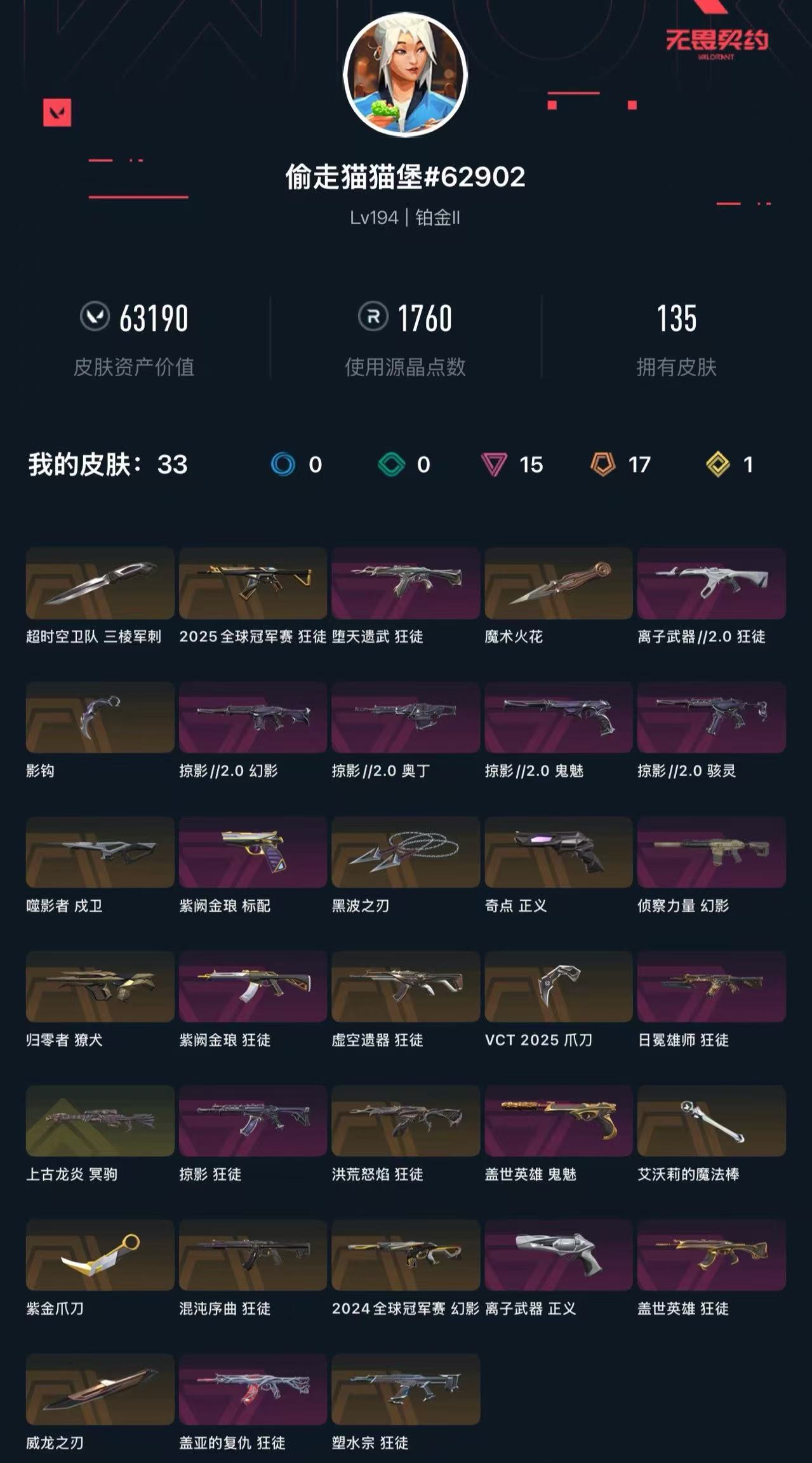 首页 > 租号大厅 > 无畏契约-wegame > wegame/wegame > 冻结秒解⚡7w库三棱军刺24冠军25冠军⚡VCT爪黑波紫金爪猫猫棒电工钳影钩套离子盖亚塑水宗混沌洪荒