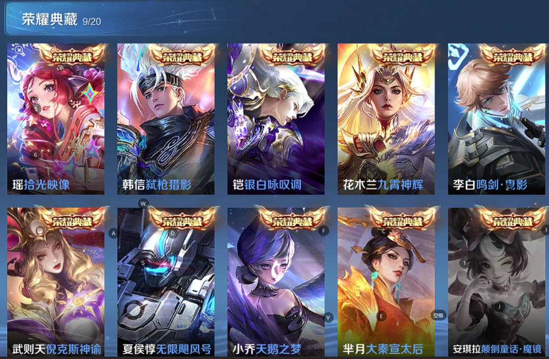 V 10!十个荣耀水晶!花木兰荣耀典藏神启/太后/天鹅/神谕/活力突击/鸣剑/飓风号/全息,双王者之证!360皮肤,全英雄