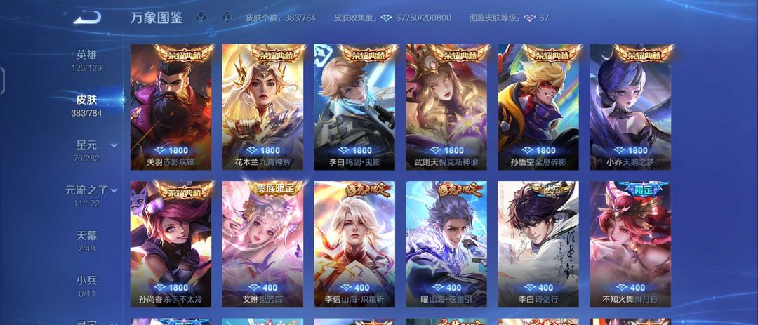 【非云直上】V10★皮肤榜一★539皮满典藏★鲁班时之奇旅会员★虞姬黛羽霜翎星元★吕布白金战神★全能大师★多金标★个性按键