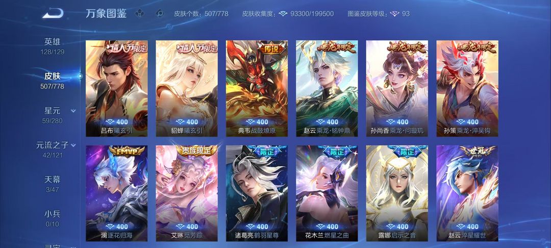 【非沄直接上号】极品V10★三历史国标★430皮★六典藏★诸葛亮新典藏★虎年五限定★鸣剑戈影★活力突击️★多限定