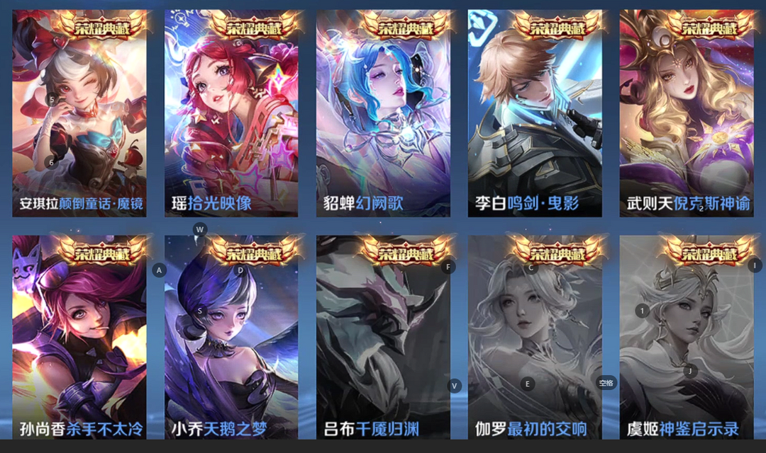 v10、12典藏527皮、【伽罗-沧流箭】云缨-神骥·越千峰、马超无双飞将、韩信典藏、马可深海之熄、青丘·九尾、枫霜尽、绯月行、前尘镜、至尊宝、天魔缭乱