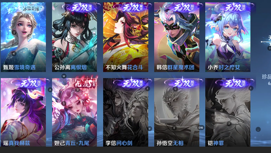 【非沄】无双贵10★真榜一满典藏630满皮★马克新皮★★虞姬星元★白金战甲★按键★瑶、天使星元
