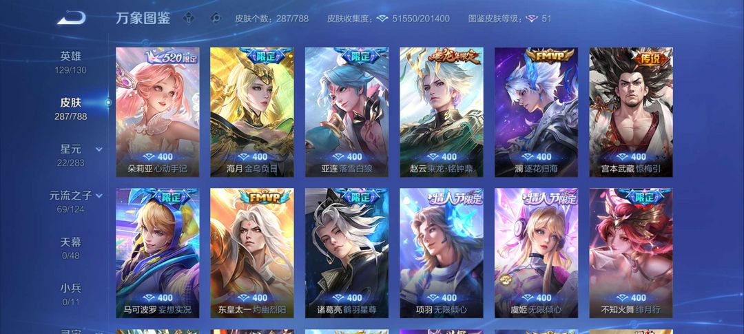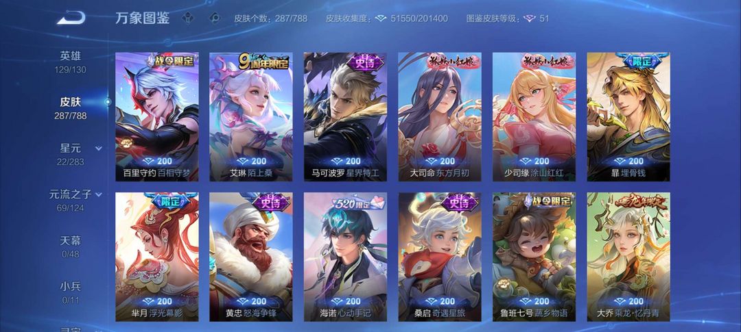 【非云直上】537满皮满典藏12星元◎鲁班新皮◎虞姬星元◎天使星元◎白金战神◎妲己绝版星元