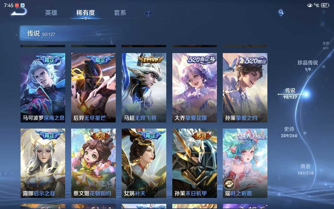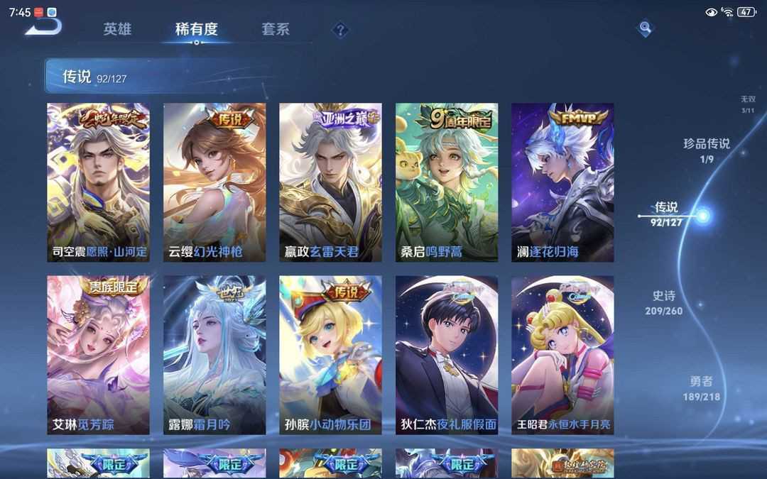 v10 韩信典藏 瑶无双 嫦娥珍品 620皮 14水 3无双 1珍品 92传说