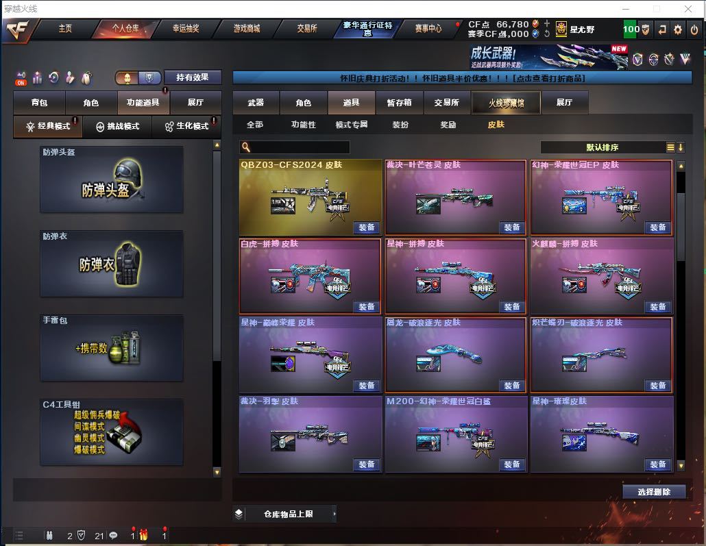 爆破全装号+6烈6盘幻神4皮+98k4皮+白虎qbz三皮雷神荣耀皮98音效卡