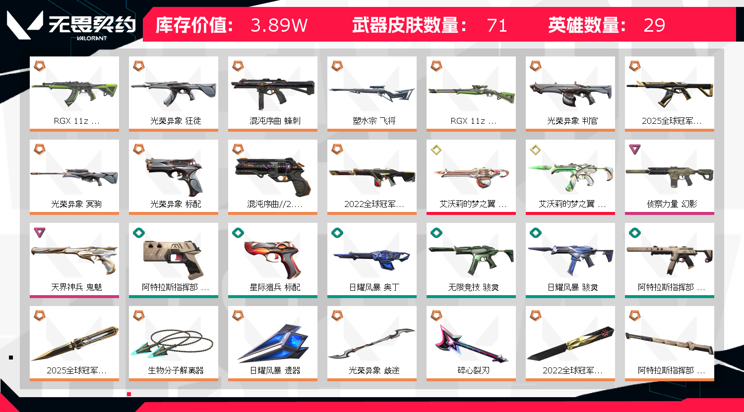 首页 > 租号大厅 > 无畏契约-wegame > wegame/wegame > 冻结秒解⚡5w库22冠军套25冠军套⚡光荣异象套侦察混沌天界鬼魅显卡狂徒塑水宗飞将艾沃莉骇灵奥丁
