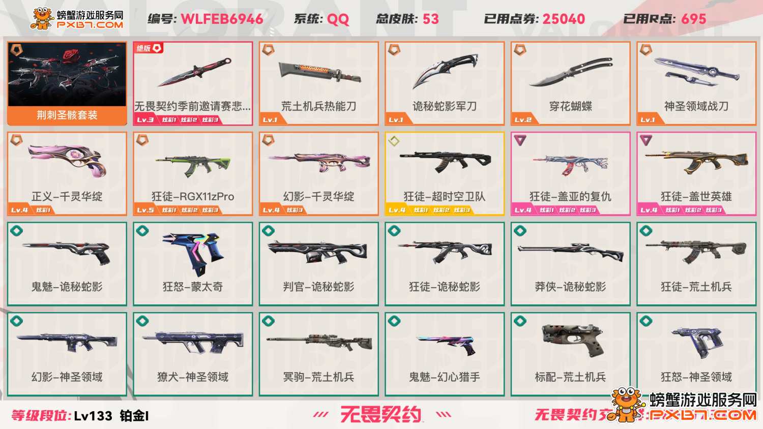 Q区精品号✨荆刺圣骸/超时空卫队 全热门武器 可排位无封禁;