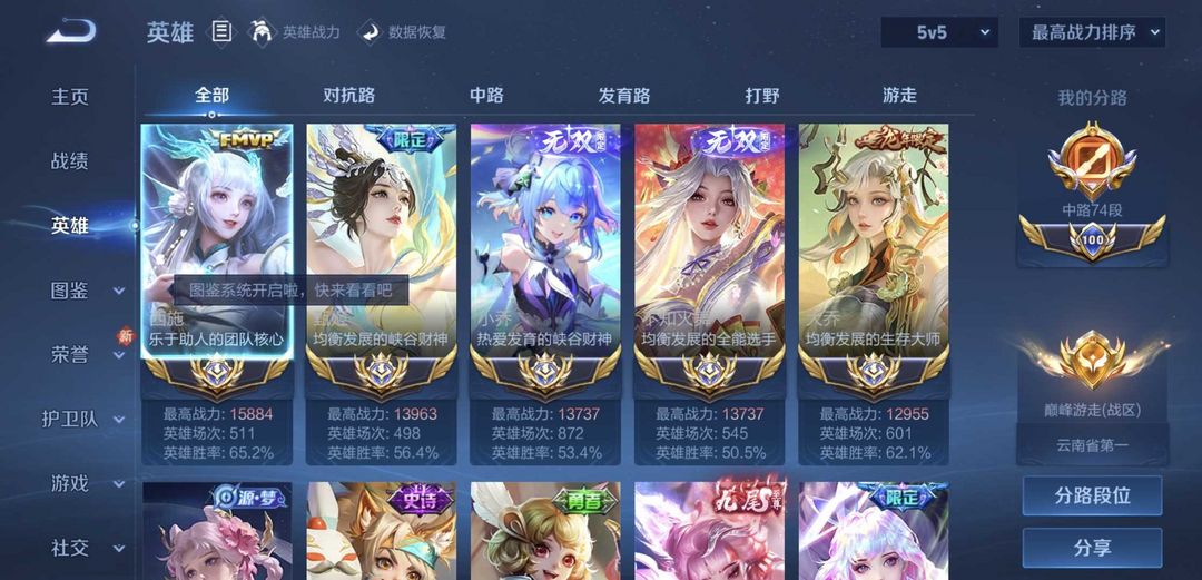 四月在榜四省标小乔火舞甄姬妲己⭐⭐历史国服火舞小乔甄姬西施大乔⭐73段中路⭐魔方亮