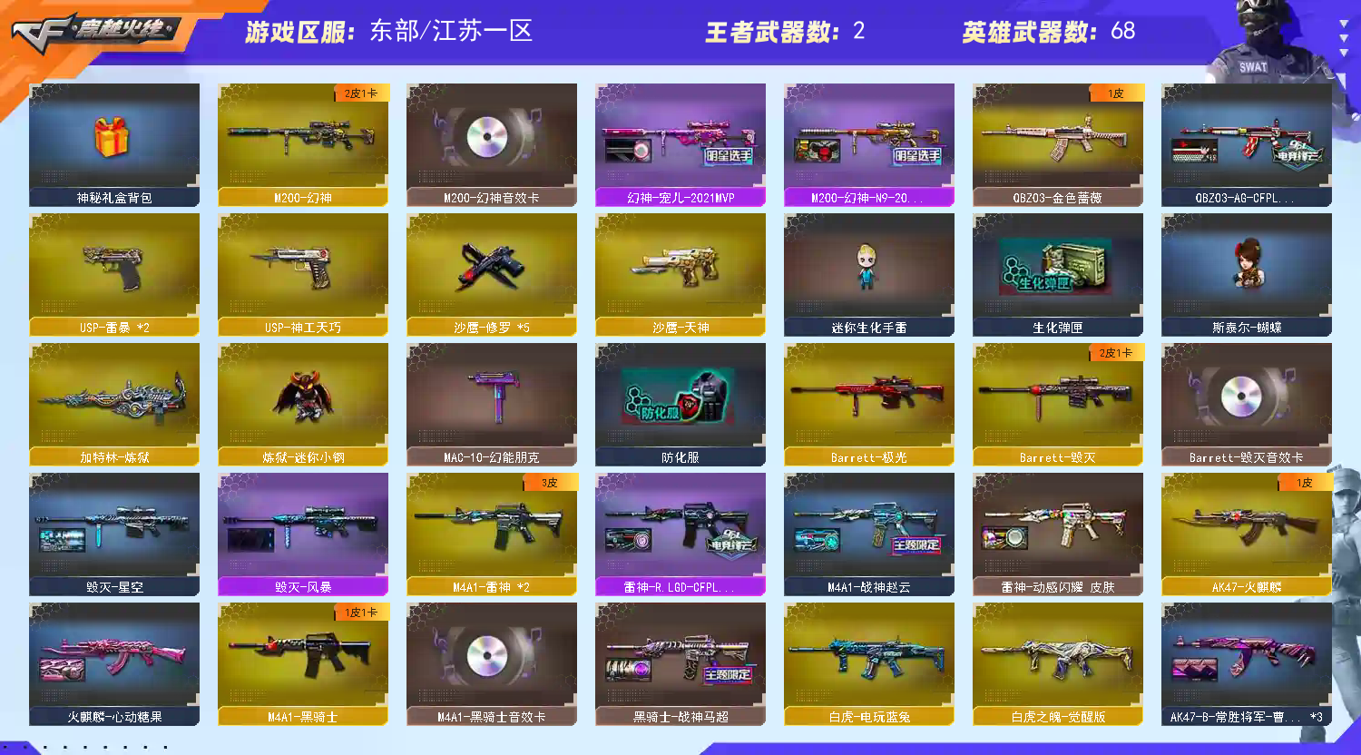 ★收藏好评!★ ━━━━━━━━ 由于异地登录保护机制,部分客户在使用客户端自动上号时会出现密码错误,注意本号密码不会错误 ,请多尝试5-6次!本账号已经过虚拟财产,请各位科技大神高抬贵手。请素质租号,文明游戏,谢谢大家配合!!! 账号装备;USP-雷暴,QBZ03-金色蔷薇,M200-幻神,