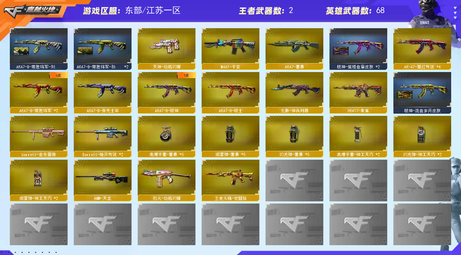 • 游戏区服:穿越火线 / 东部 / 江苏一区
