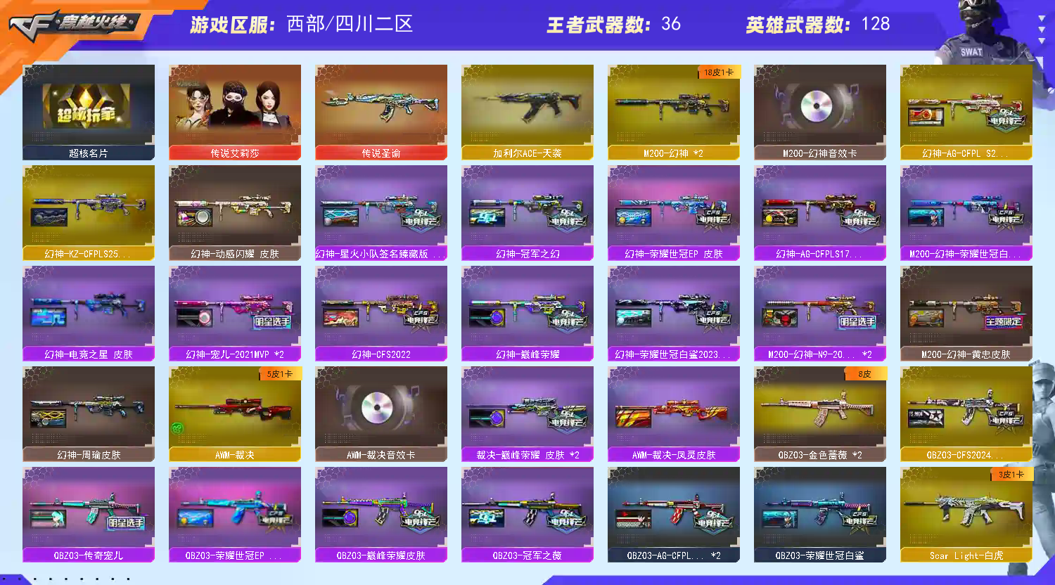 首页 > 租号大厅 > 穿越火线 > 西部/四川二区 > 爆破号多皮肤多武器,幻神QBZ幻影加利尔等