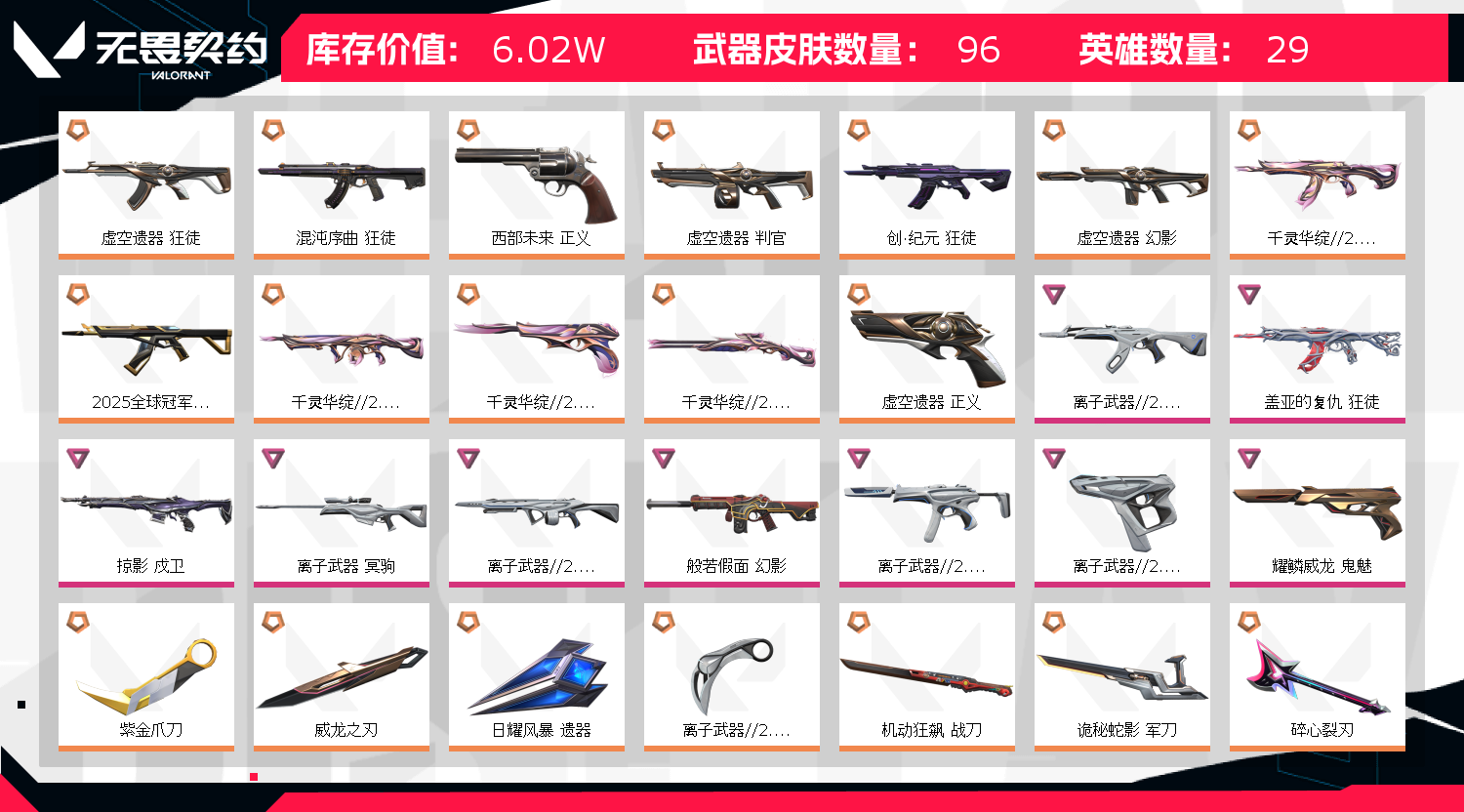 首页 > 租号大厅 > 无畏契约-wegame > wegame/wegame > 6W库/25冠军莲花2.0套虚空仪器套离子2.0套紫金爪刀魔法棒威龙套