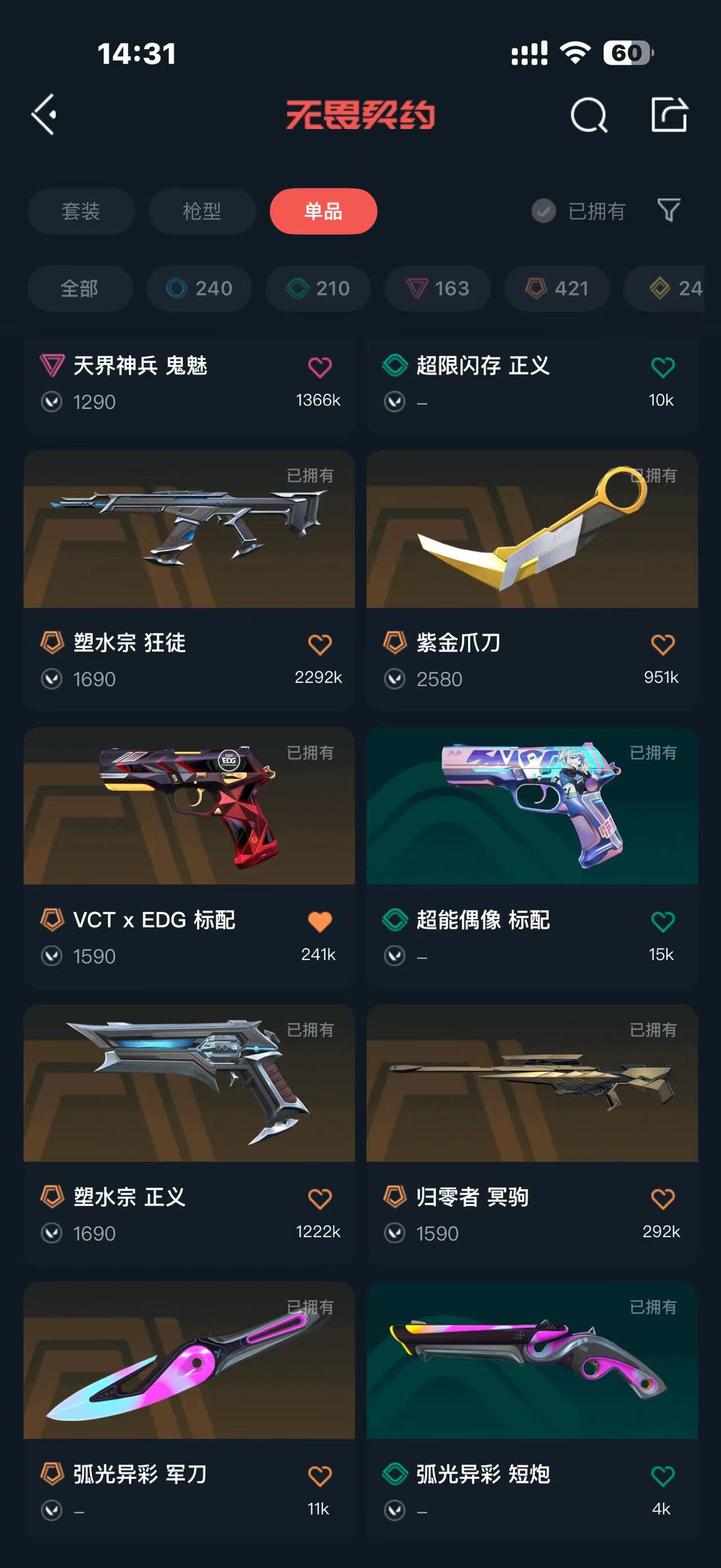 • 皮肤资产价值: 20660