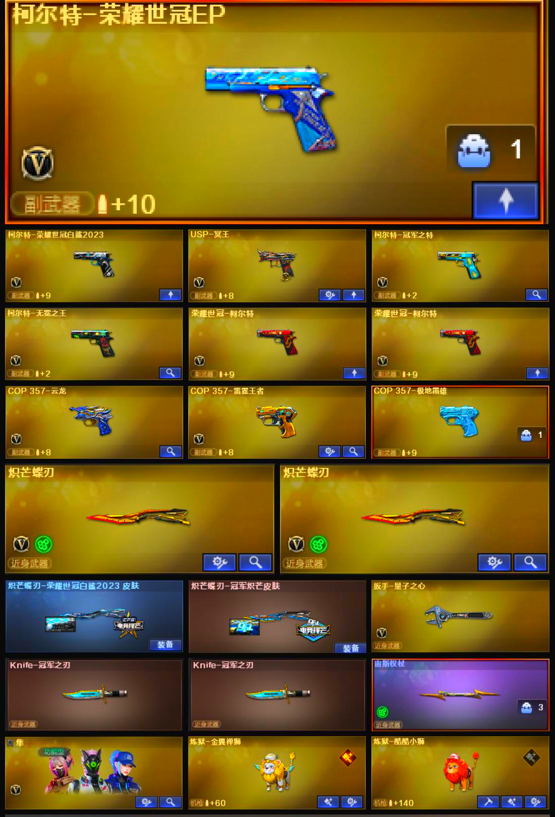 男帝金色礼盒艾莉莎幻神欧欧EP带卡星神裁决三件套♥白虎常旭带卡qbz宠儿24带卡满级八面天袭幻影皮卡10个满质量手枪双蝴蝶刀双冠军之刃隼奇幻狮子六盘六烈蝴蝶宙斯套生化满皮♥此号氪金10w+开挂必起诉♥喜欢老板收藏不迷路;柯尔特-无冕之王,荣耀世冠-柯尔特,柯尔特-荣耀世冠白鲨2023,柯尔特-冠军之特,炽芒蝶刃,Knife-冠军之刃,传说星骇,
