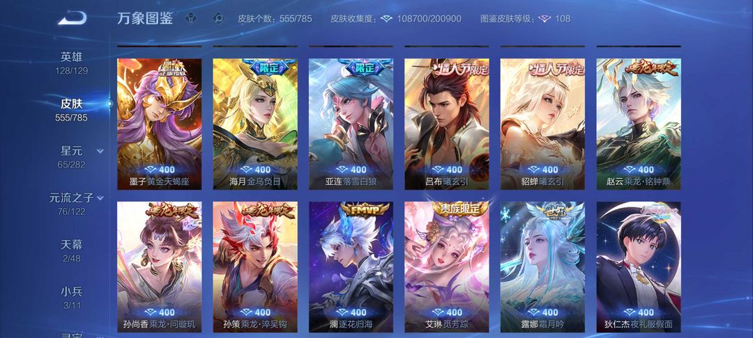 v10❤️555皮肤❤️9典藏❤️71传说❤️4无双❤️3小兵❤️怪盗基德❤️器灵螭龙剑