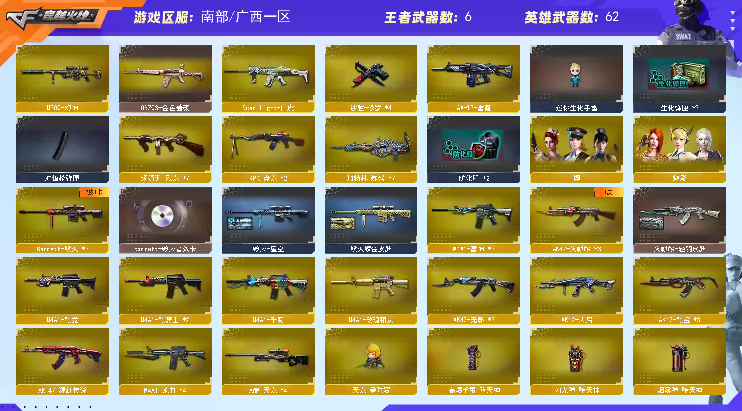 南部⭐2盘龙 4炼狱 6烈龙 死亡之眼⭐M200-幻神 QBZ03-金色蔷薇 王者之武