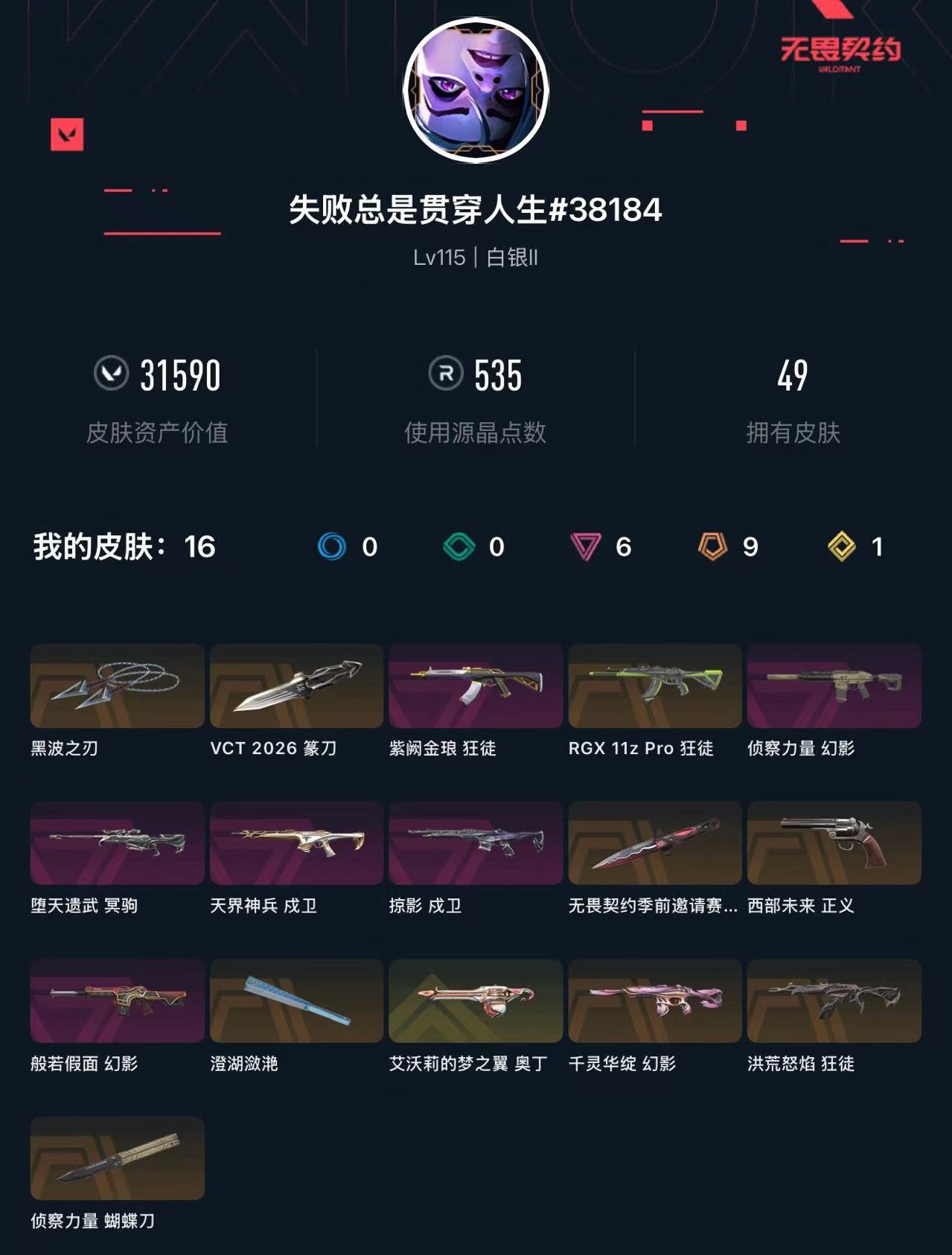 • 游戏区服:无畏契约-wegame / wegame / wegame