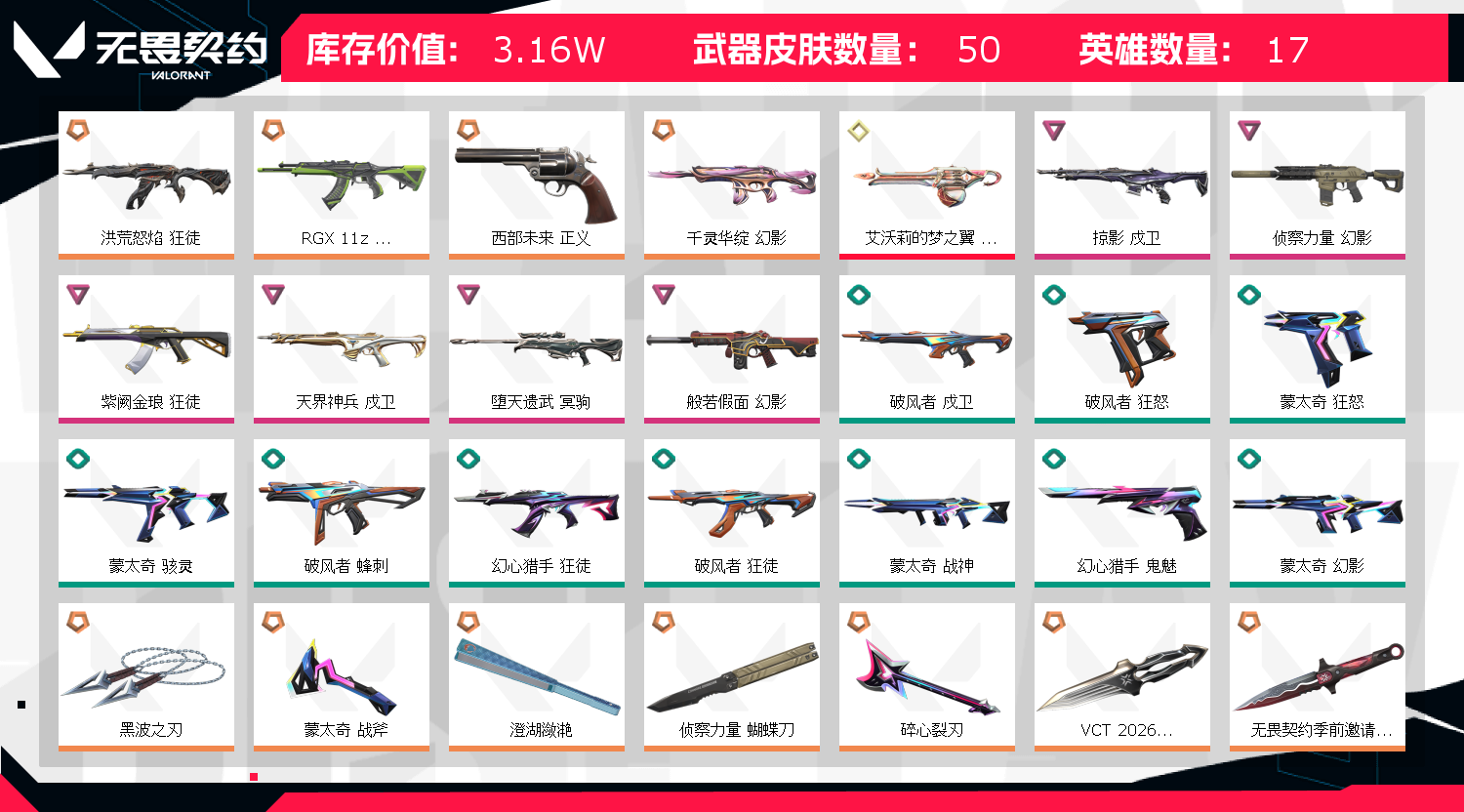 首页 > 租号大厅 > 无畏契约-wegame > wegame/wegame > 冻结秒解⚡4w库VCT篆刀黑波怜悯鱼扇侦察蝴蝶⚡AK洪荒紫金显卡幻影侦察般若千灵华绽堕天冥驹西部正义
