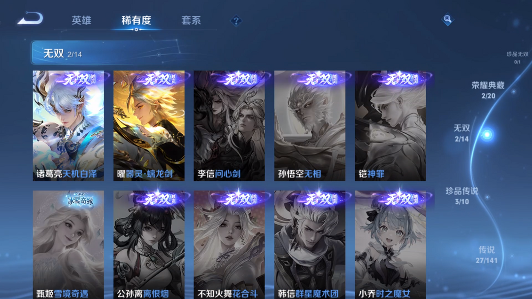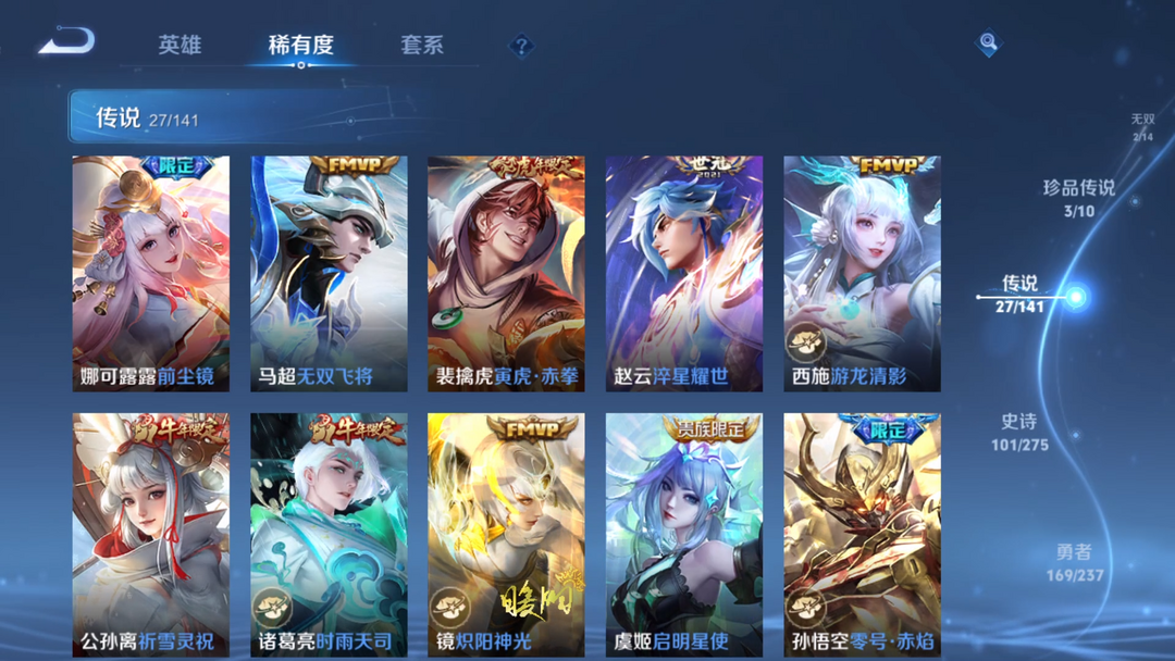 【非云直上】V10★皮肤榜一★539皮满典藏★鲁班时之奇旅会员★虞姬黛羽霜翎星元★吕布白金战神★全能大师★多金标★个性按键