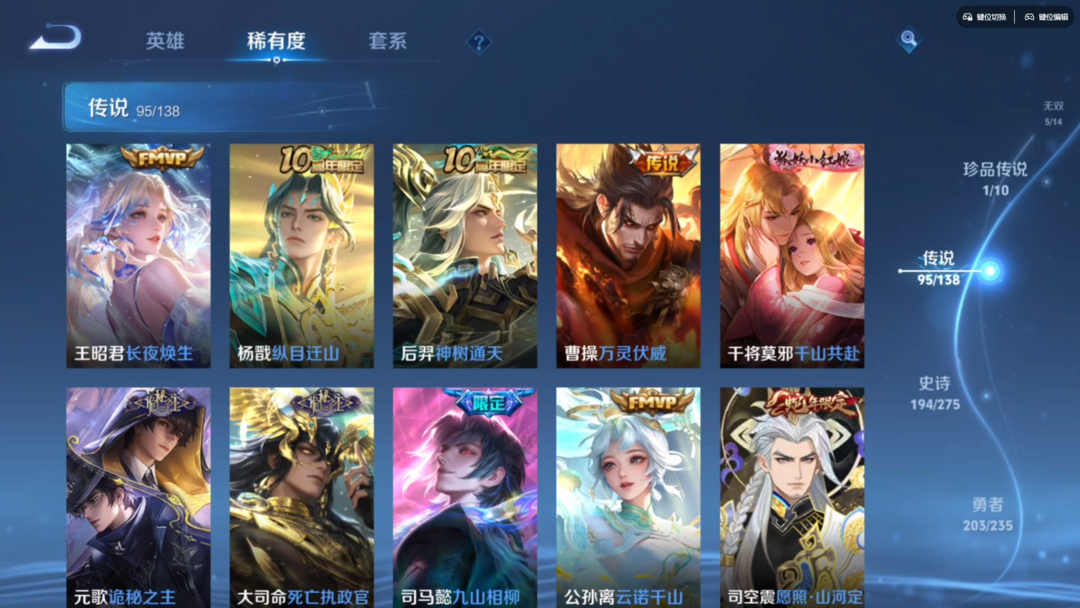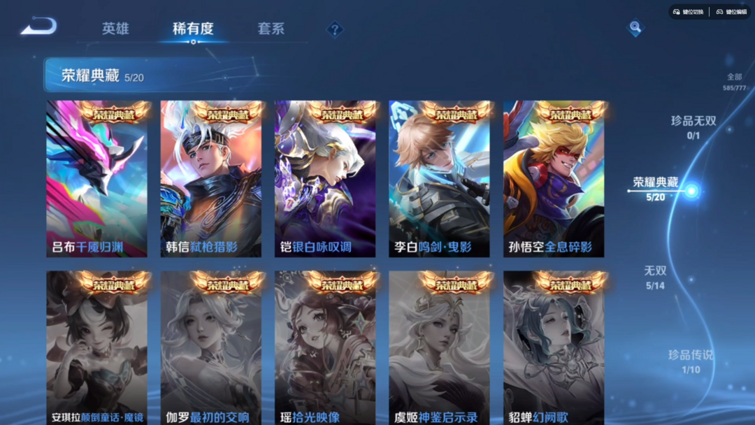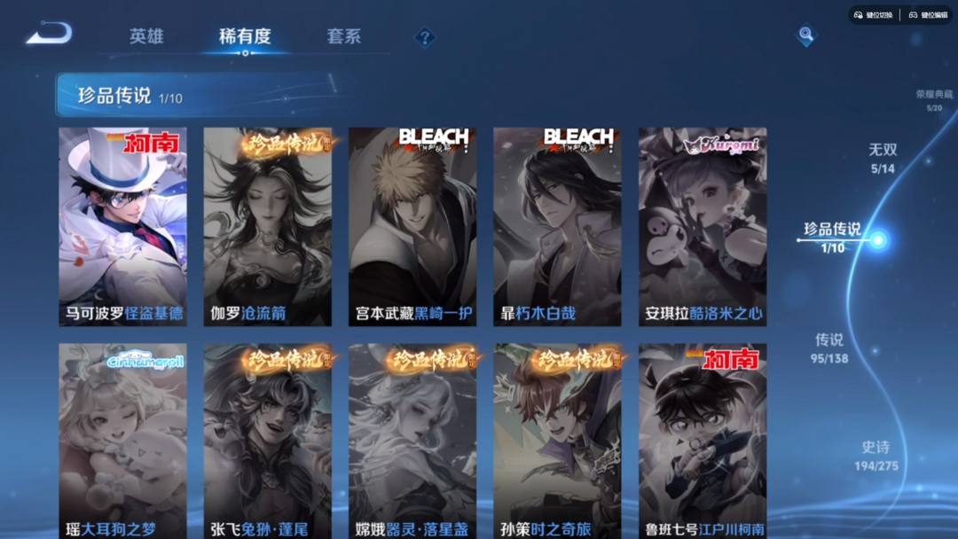 V10、550皮14水、吕布典藏-千魇归渊、云缨-神骥·越千峰、怪盗基德、伽罗星传说红枫、瑶典藏拾光映像、冥王哈迪斯、、龙年限定、齐天大圣