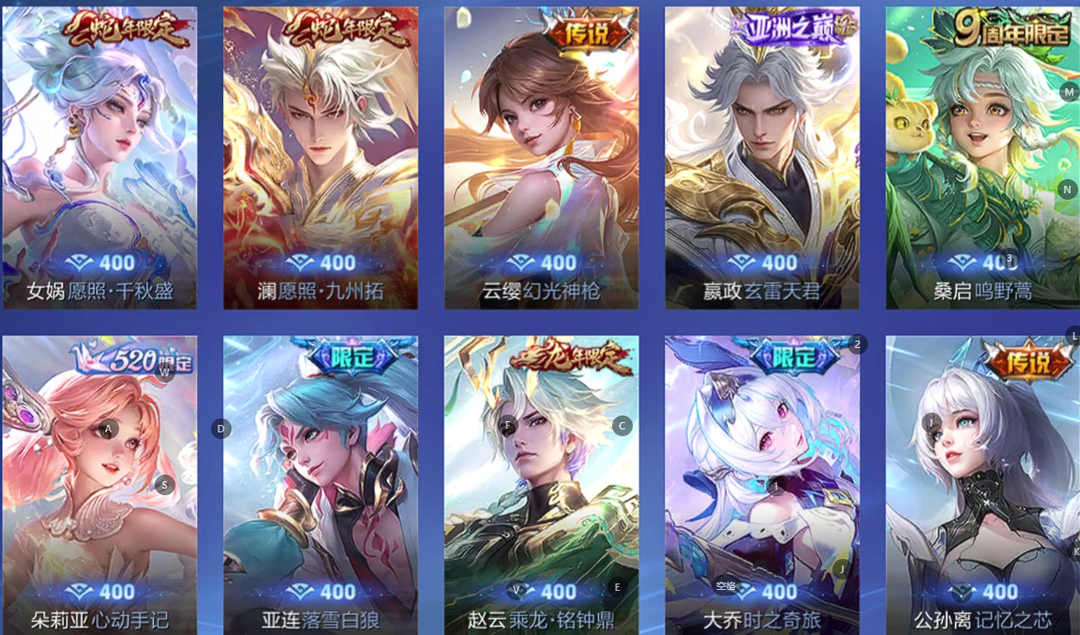 女生号 贵10 多皮肤多传说 别拿那些空号v10来比 要看性价比 貂蝉武则天夏侯惇孙悟空李白鲁班小乔荣耀水晶 妲己九尾无双皮肤 80个传说 473皮肤