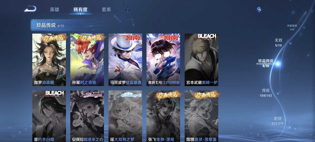 V10、550皮14水、吕布典藏-千魇归渊、云缨-神骥·越千峰、怪盗基德、伽罗星传说红枫、瑶典藏拾光映像、冥王哈迪斯、、龙年限定、齐天大圣