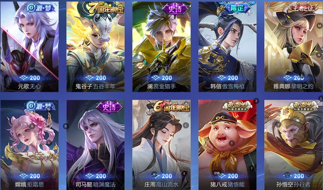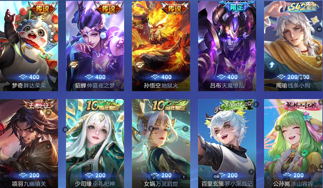 女生号 贵10 多皮肤多传说 别拿那些空号v10来比 要看性价比 貂蝉武则天夏侯惇孙悟空李白鲁班小乔荣耀水晶 妲己九尾无双皮肤 80个传说 473皮肤