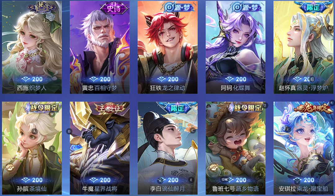 【非云直上】V10★皮肤榜一★539皮满典藏★鲁班时之奇旅会员★虞姬黛羽霜翎星元★吕布白金战神★全能大师★多金标★个性按键