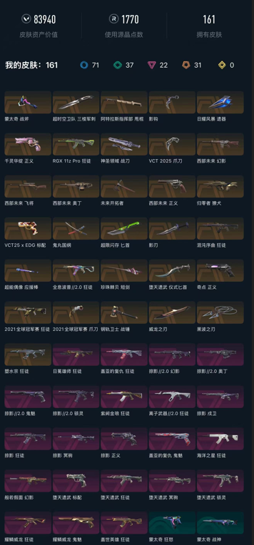 • 皮肤资产价值: 83940