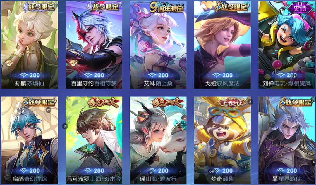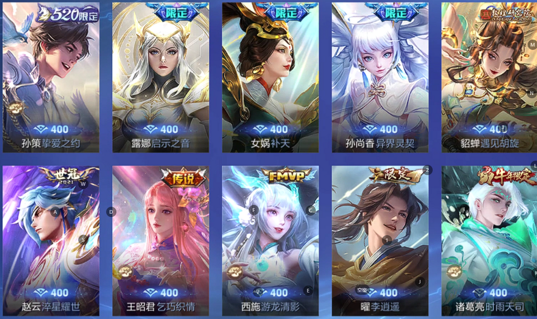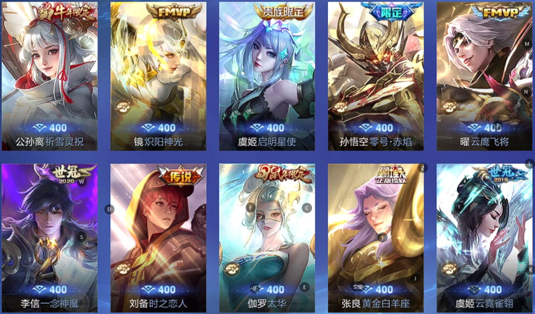 【非云直上】537满皮满典藏12星元◎鲁班新皮◎虞姬星元◎天使星元◎白金战神◎妲己绝版星元