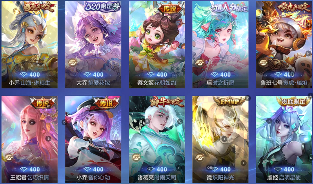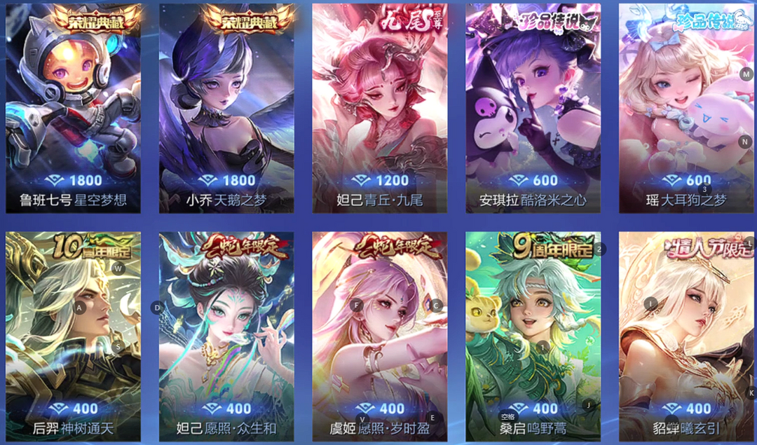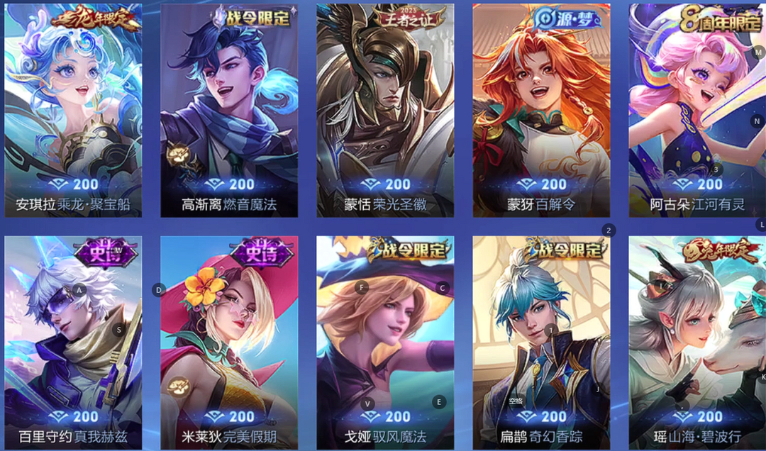 【非云直上】V10★皮肤榜一★539皮满典藏★鲁班时之奇旅会员★虞姬黛羽霜翎星元★吕布白金战神★全能大师★多金标★个性按键