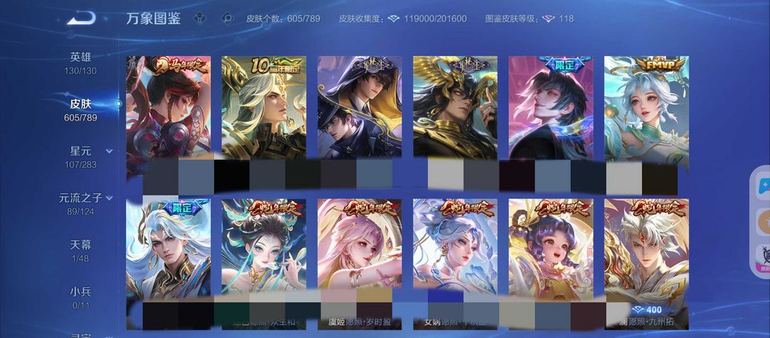 【非云直上】V10★皮肤榜一★539皮满典藏★鲁班时之奇旅会员★虞姬黛羽霜翎星元★吕布白金战神★全能大师★多金标★个性按键