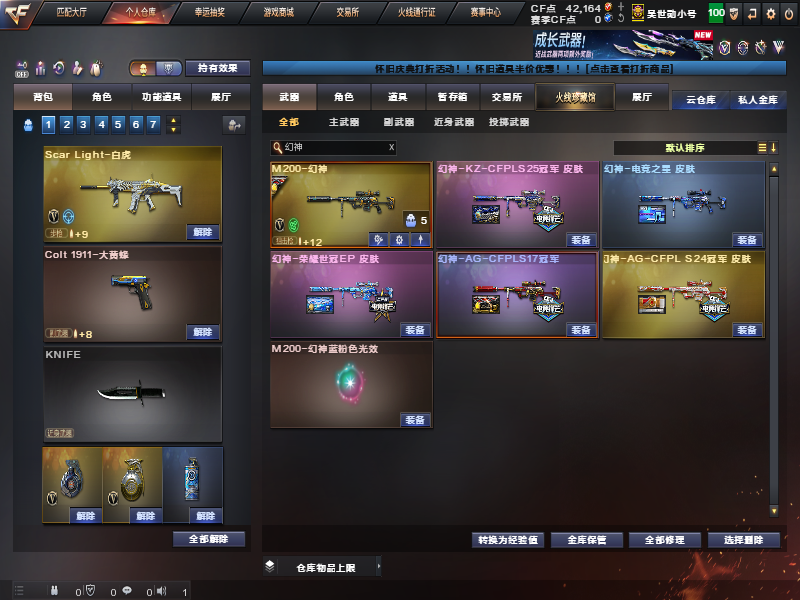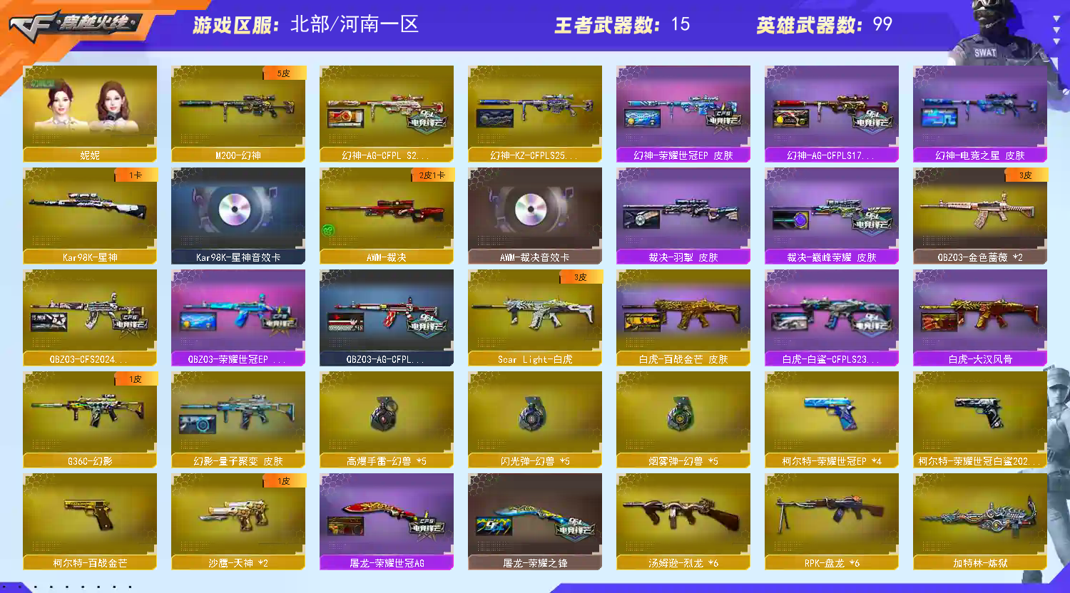66666;柯尔特-荣耀世冠白鲨2023,妮妮,RPK-盘龙,QBZ03-金色蔷薇,G36C-幻影,M200-幻神,Scar Light-白虎,